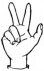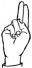 На ћирилици написано МИЛА ОЛУЈИЋ састоји се из 10 слова [?]. Исписано ћириличном једноручном азбуком за глувонеме:
