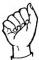 На ћирилици написано МИЛА ОЛУЈИЋ састоји се из 10 слова [?]. Исписано ћириличном једноручном азбуком за глувонеме: